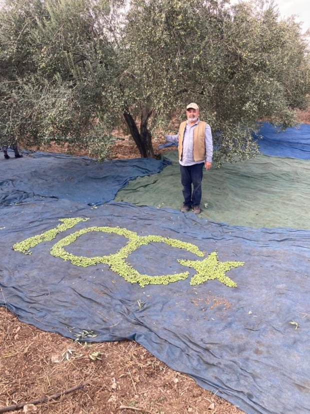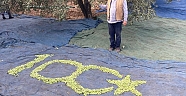 Kırkağaç öveçli Mahallesi'ndeki çiftçilerimiz kalplerindeki Cumhuriyet sevgisini ve ulusça kutladığımız cumhuriyetimizin 100 yıl coşkusunu tarlalarında, zeytin bahçelerinde zeytin toplarken topladıkları zeytinler ile hazırladıkları muhteşem yüzüncü yıl logosunu anlamlı ve duygusal bir şekilde dile getirdiler.