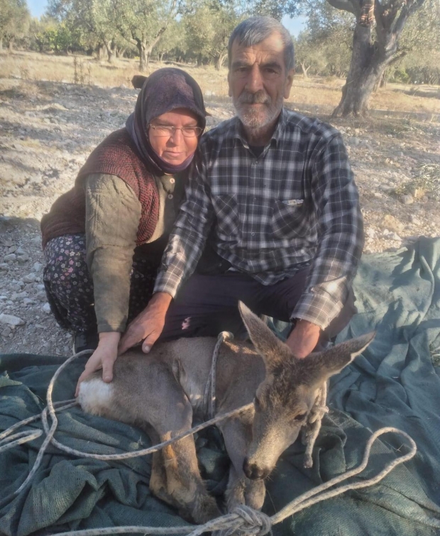 Yaklaştıklarında karacanın köpeklerden kaçarken baygınlık geçirdiğini gören Küçük, hemen karacayı güvenli bir şekilde zeytinliğine taşıdı. Durumu jandarmaya bildiren Küçük, gelen ekiplere karacayı teslim etti.